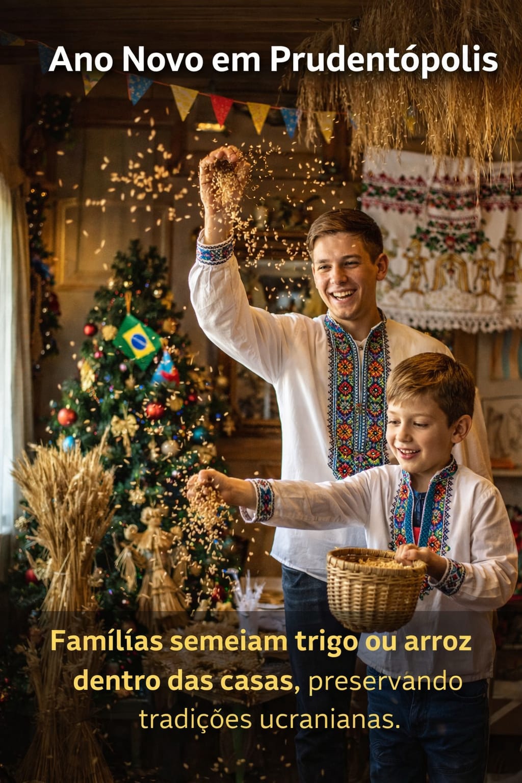 O Ano Novo em Prudentópolis, no Paraná, é celebrado de maneira especial e profundamente ligada às raízes culturais da cidade. Conhecida como a “Ucrânia Brasileira”, Prudentópolis preserva tradições herdadas da imigração ucraniana, que marcam a identidade do município e fortalecem os laços comunitários. Uma das práticas mais significativas desse período é a Posivannya, também chamada de Sowing (semeadura), um ritual repleto de simbolismo e esperança para o ano que se inicia.