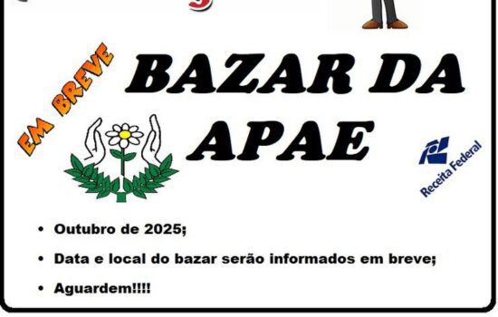 A Associação de Pais e Amigos dos Excepcionais (APAE) de Guamiranga confirmou a realização de um bazar beneficente no mês de outubro. A ação tem como objetivo levantar recursos para a manutenção das atividades da entidade, que oferece apoio fundamental a pessoas com deficiência intelectual e múltipla no município.