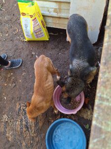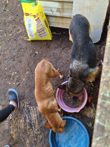 De acordo com a Apasfa, Meg sobrevive de restos de comida e, na disputa por alimento, sofre agressões da irmã mais velha. Mesmo após tanto sofrimento, o relato destaca que ela permanece mansa e extremamente afetuosa.