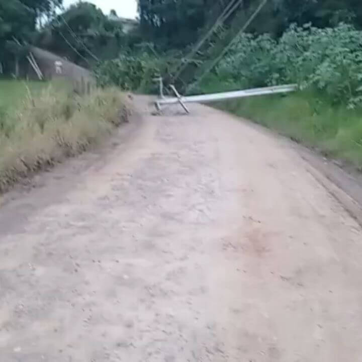 Moradores relataram acúmulo de galhos na via após o incidente. Em situações semelhantes, a orientação é evitar se aproximar da área atingida, especialmente se houver risco de novos deslizamentos de vegetação, e acionar os serviços de emergência para a retirada segura do material.