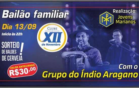 No sábado, 13 de setembro, Prudentópolis será palco de mais uma edição do Bailão Familiar, evento que deve movimentar a cidade com música e integração comunitária. A festa acontece no Clube XII de Novembro, a partir das 22h, e terá show do Grupo do Índio Aragano, atração reconhecida pelo estilo animado que garante pista cheia nos bailes da região.