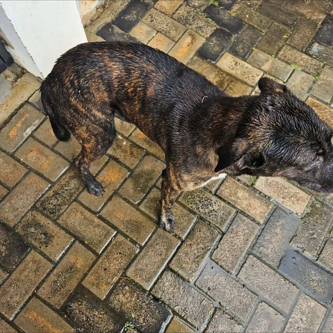 De acordo com a publicação, o cachorro de porte médio e pelagem escura rajada surgiu próximo à igreja e, nesta segunda-feira (28), teria seguido algumas crianças até o Colégio Cristóforo na Vila das Flores. A suspeita é de que o animal esteja perdido e tentando voltar para casa.