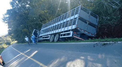 Na tarde deste domingo (31/08), um caminhão saiu da pista em um trecho asfaltado que liga Prudentópolis à localidade de Linha Esperança.
