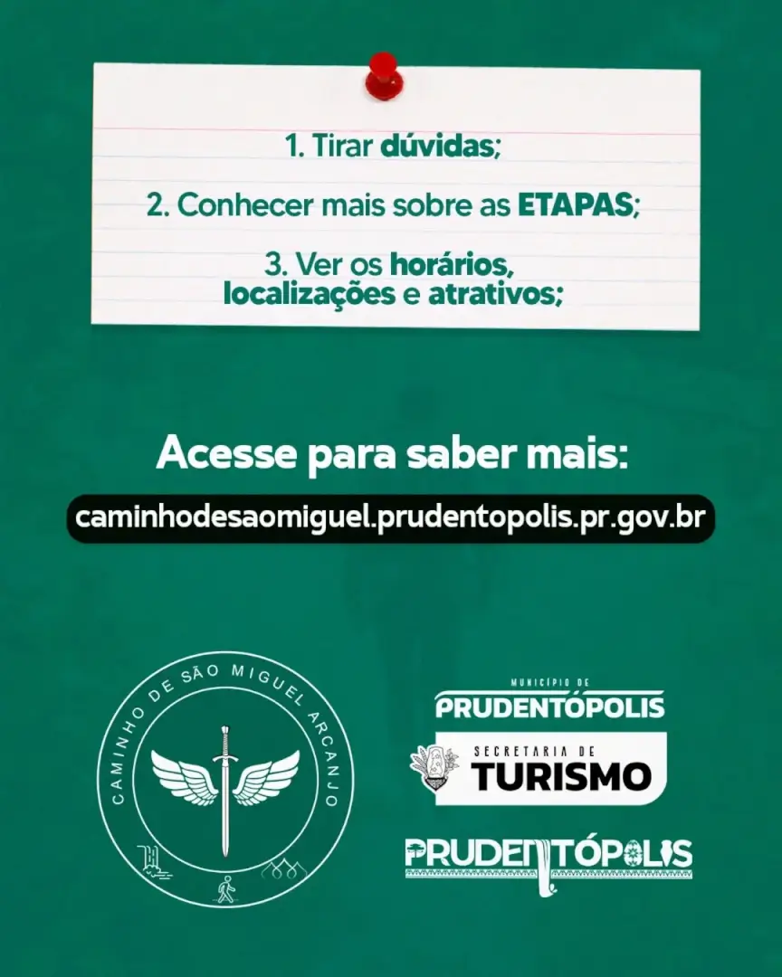O site oficial do Caminho de São Miguel Arcanjo concentra, em um só lugar, as etapas da rota, horários, localizações e principais atrativos, além de orientações para quem deseja realizar a peregrinação de forma oficial: caminhodesaomiguel.prudentopolis.pr.gov.br.