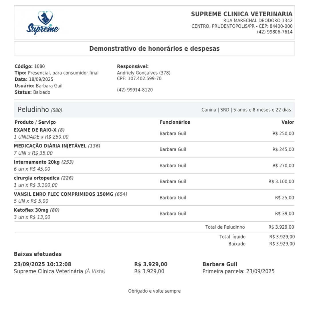 O cachorro Caramelo, conhecido e querido em Prudentópolis, passou por uma cirurgia custeada integralmente com recursos arrecadados em uma campanha solidária. Em apenas poucos dias, a mobilização conseguiu juntar R$ 3.949,00, valor destinado ao pagamento do procedimento.