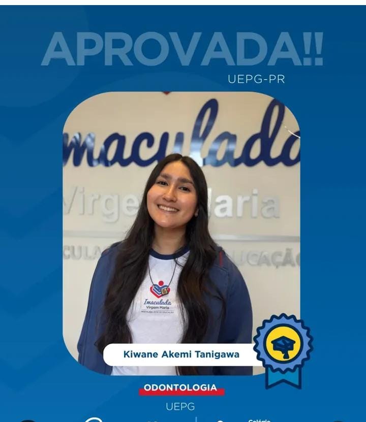 Outra conquista de destaque é a de Kiwane Akemi Tonigawa, que alcançou o 5º lugar em Odontologia na Universidade Estadual de Maringá (UEM). Trata-se da segunda aprovação da aluna em universidade pública, resultado de perseverança e desempenho consistente. A instituição parabenizou a estudante, sua família e os professores que contribuíram para essa trajetória.