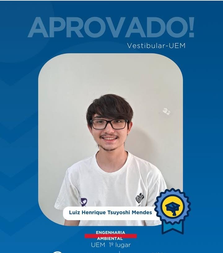 Também pela UEM, Luiz Henrique Tsuyoshi Mendes conquistou o 1º lugar em Engenharia Ambiental, feito que evidencia excelência acadêmica em um dos cursos mais concorridos do estado. A colocação reforça o talento e o comprometimento do aluno com a formação científica e técnica.