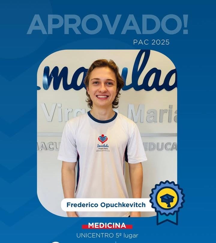 O Colégio Imaculada Virgem Maria comemorou, com orgulho, a aprovação de alunos em cursos de alta concorrência em universidades públicas do Paraná e do país. As conquistas refletem o empenho dos estudantes, o apoio das famílias e o trabalho contínuo da equipe pedagógica ao longo da trajetória escolar.