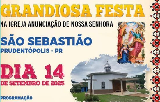 A comunidade de São Sebastião, em Prudentópolis, promove no próximo domingo, 14 de setembro de 2025, a tradicional Festa na Igreja Anunciação de Nossa Senhora. O evento promete reunir fiéis, visitantes e moradores locais em um dia de celebração, fé, confraternização e atrações culturais.