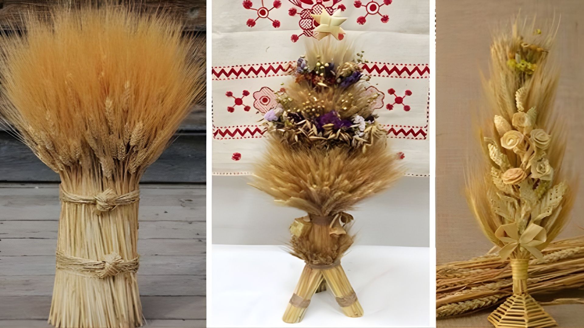 Além das espigas, o Didukh é tradicionalmente decorado com flores secas, flores de papel, ramos de viburno, ervas medicinais, fitas coloridas e frutos, elementos que reforçam o desejo de saúde, prosperidade e equilíbrio para a família. Cada detalhe da ornamentação carrega um significado, transformando o feixe em um amuleto completo de proteção e boas colheitas.