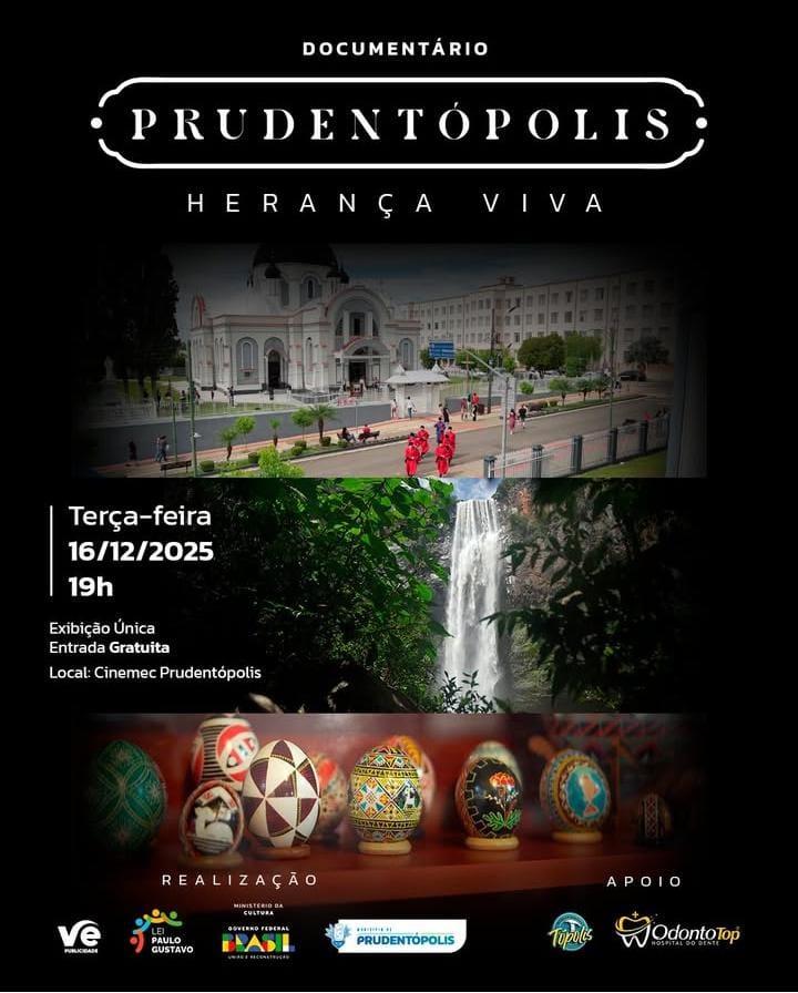 Prudentópolis será palco do lançamento do documentário “Prudentópolis Herança Viva”, uma produção que propõe uma imersão profunda na história, na cultura e na identidade de um dos municípios mais emblemáticos do Paraná. A exibição acontece em sessão única e gratuita, no dia 16 de dezembro (terça-feira), às 19h, no Cinemec Prudentópolis, localizado na Rua Cândido de Abreu, 922, no Centro.