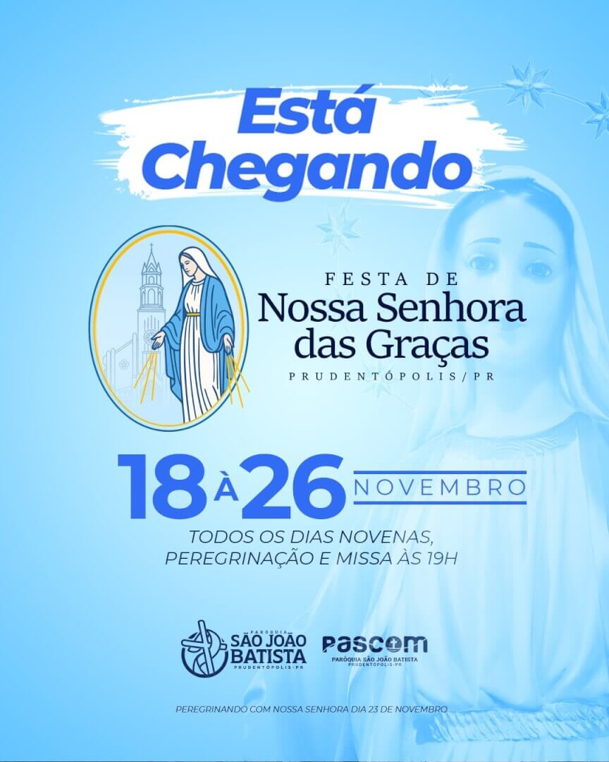 A Paróquia São João Batista de Prudentópolis se prepara para um dos momentos mais esperados do calendário religioso: a Festa de Nossa Senhora das Graças, que acontece de 18 a 26 de novembro. Durante os nove dias, os fiéis poderão participar de novenas, peregrinações e missas diárias, sempre às 19h.