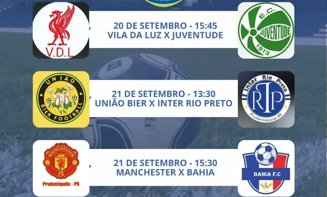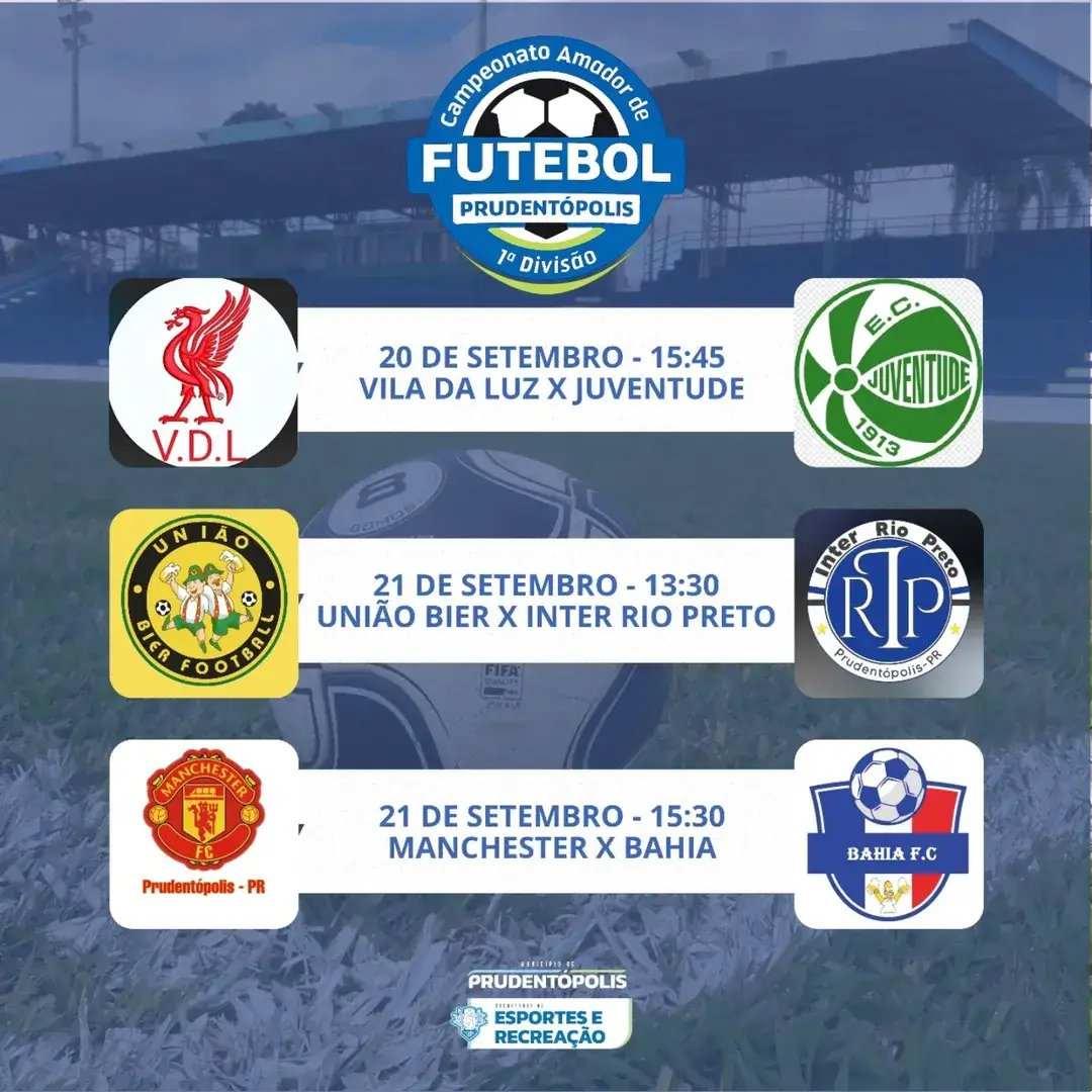 O Estádio Municipal Newton Agibert, em Prudentópolis, recebe neste fim de semana mais uma rodada do Campeonato Amador – 1ª Divisão. Serão três partidas: no sábado (20), às 15h45, Vila da Luz enfrenta o Juventude. No domingo (21), a bola rola para União Bier x Inter Rio Preto às 13h30 e, na sequência, às 15h30, Manchester x Bahia.