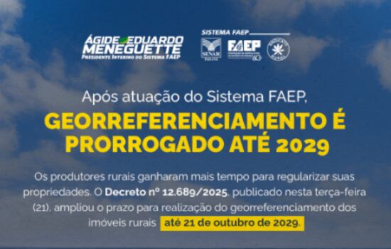 A prorrogação ocorreu após articulação do Sistema FAEP. A entidade destacou que a medida traz mais tranquilidade para o produtor organizar a documentação e concluir os levantamentos técnicos, reforçando a segurança jurídica no meio rural.