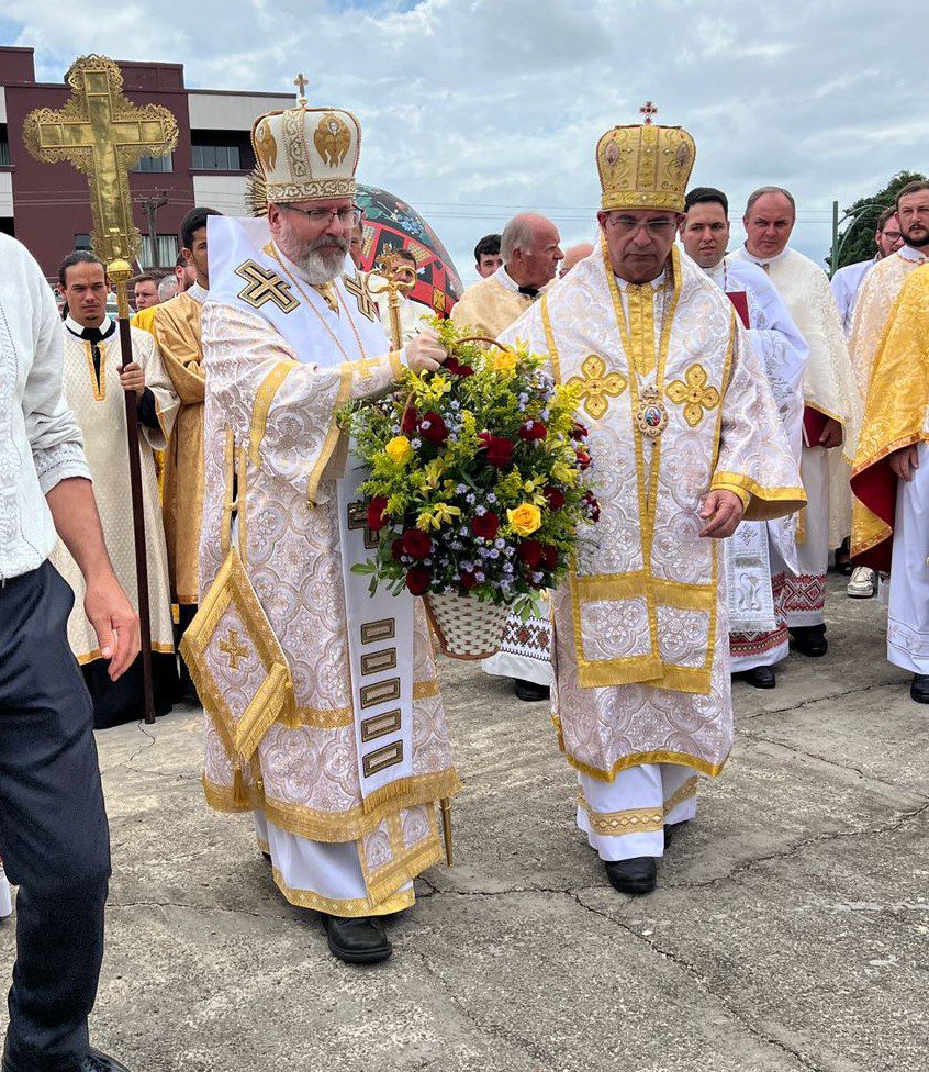 Em Prudentópolis, município reconhecido pela forte presença da cultura ucraniana, a data também foi marcada por um momento de fé e homenagem. No último dia 22 de fevereiro, após a liturgia presidida pelo Arcebispo Maior da Ucrânia, Dom Sviatoslav Shevchuk, fiéis entoaram o canto Boje Velekei e seguiram em procissão até a Praça da Ucrânia. No local, a comunidade cantou o hino ucraniano e depositou flores em frente ao monumento de Taras Shevchenko, em memória aos quatro anos de guerra e às milhares de vidas perdidas desde o início do conflito.