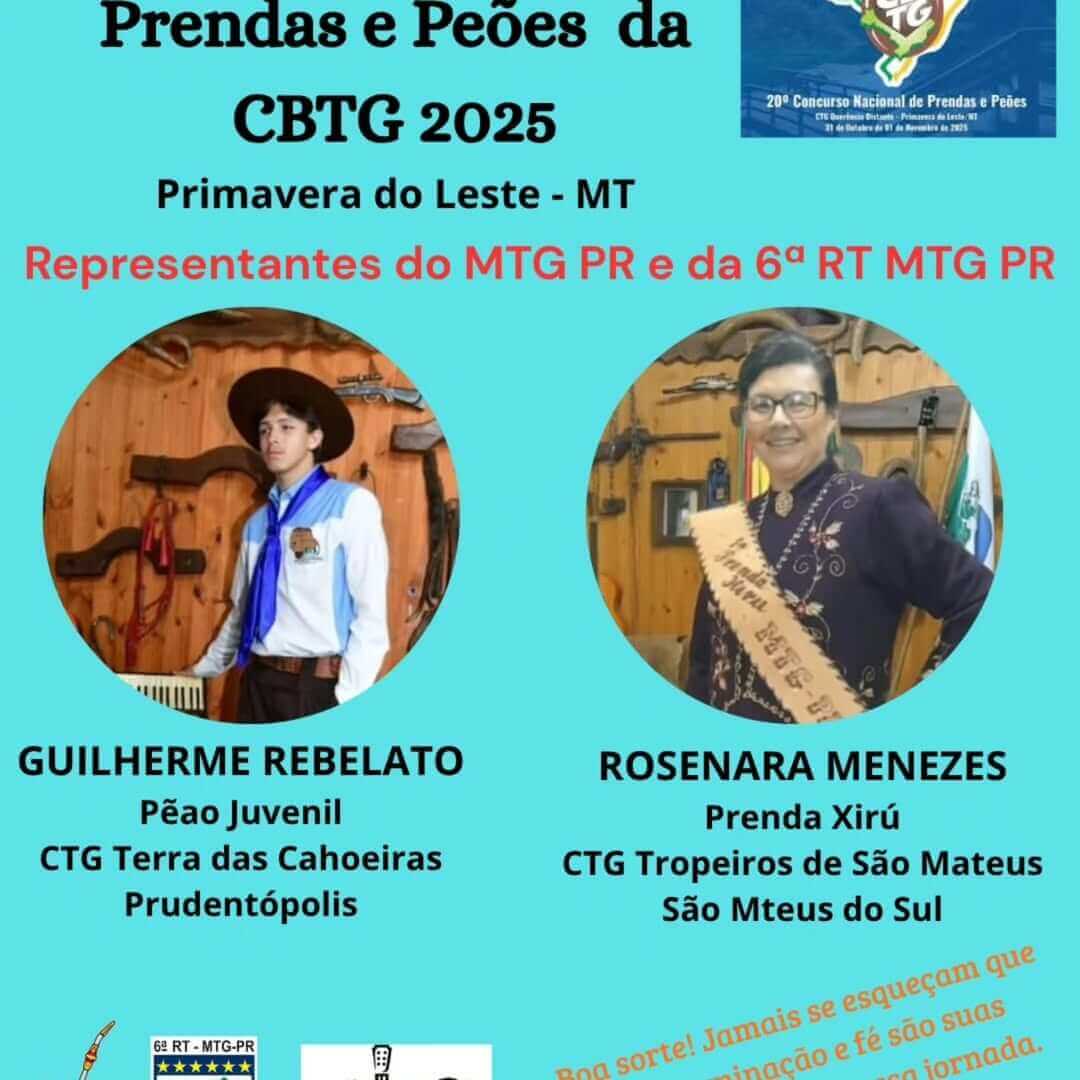 O prudentopolitano Guilherme Rebelato, atual 3º Peão Biriva Juvenil do MTG-PR, participa neste ano do Concurso de Peões e Prendas, conhecido como prendado, levando o nome do CTG Terra das Cachoeiras e de Prudentópolis para a competição que valoriza e preserva a cultura gaúcha. O certame premia peões e prendas mais habilidosos de cada entidade e assegura a continuidade dos valores do tradicionalismo.