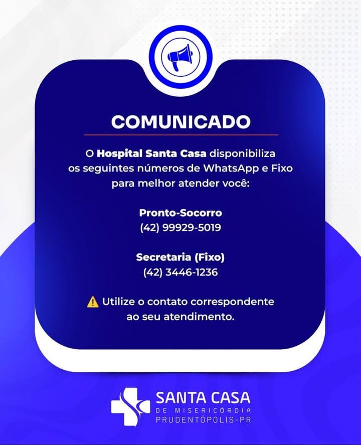 O Hospital Santa Casa de Misericórdia de Prudentópolis orienta que a população salve os números corretos e compartilhe a informação, garantindo que todos saibam como entrar em contato de forma adequada quando necessário.