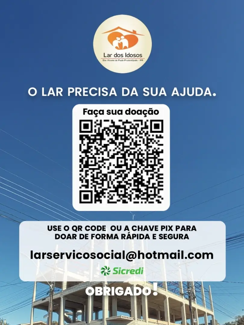 Além do jantar, o Lar dos Idosos segue recebendo doações diretas via PIX (larservicosocial@hotmail.com) ou QR Code. Cada contribuição ajuda a transformar o projeto em realidade, garantindo mais qualidade de vida, cuidado e dignidade aos idosos atendidos. A iniciativa é um convite para que toda a comunidade se una e faça parte dessa corrente do bem.
