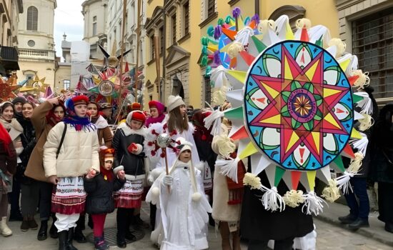Os cantos de Natal ucranianos, conhecidos como koliadky (ou “kolhadas”, como ficou popular no Brasil), seguem como uma das tradições mais marcantes do período natalino: grupos organizados percorrem casas cantando, levando uma estrela natalina e anunciando a boa nova do nascimento de Jesus Cristo, em uma tradição que une fé, memória familiar e identidade cultural.