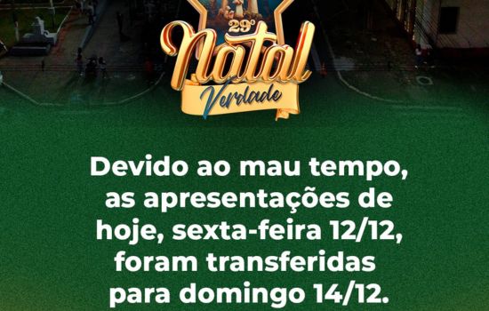 A alteração busca garantir segurança ao público, aos artistas e às equipes envolvidas na estrutura do evento, já que a instabilidade climática pode comprometer a realização das atividades ao ar livre. Com isso, as atrações previstas para esta noite passam a integrar a agenda de domingo, mantendo a proposta de reunir a comunidade na celebração do período natalino.