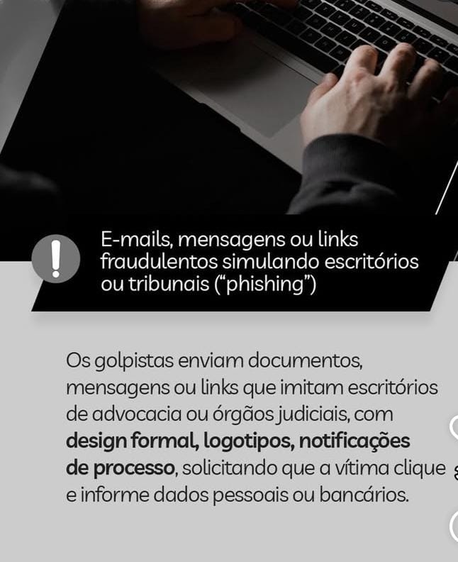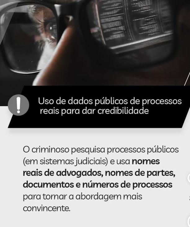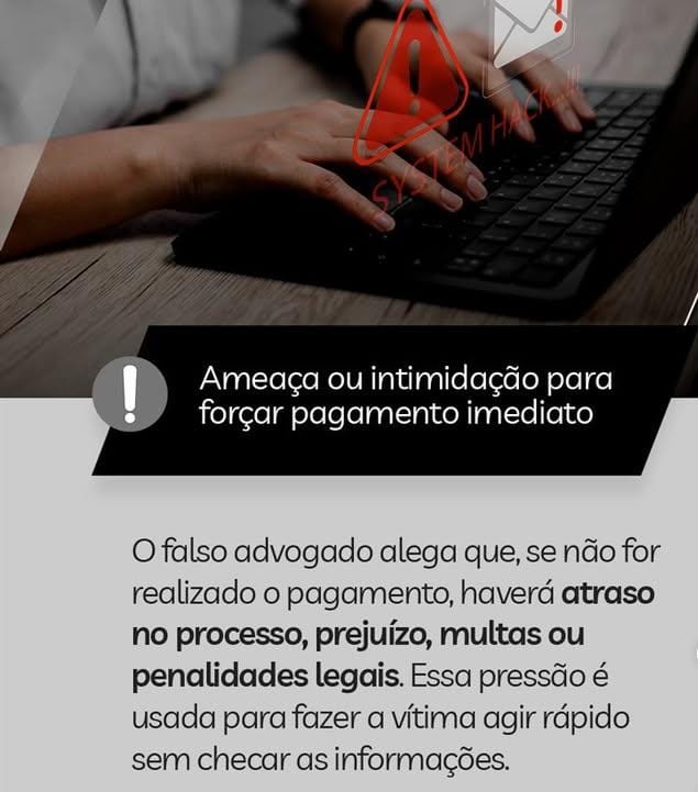As mensagens falsas podem tentar convencer a vítima com detalhes sobre processos reais, números de situações jurídicas ou promessas de ganhos, mas a orientação é sempre cruzar essas informações com os canais oficiais do advogado ou da OAB.