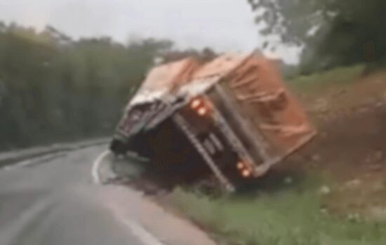 Um caminhoneiro de 49 anos saiu da pista e tombou a carreta no km 235 da BR-373, em Guamiranga, na tarde deste domingo (12), por volta das 16h30. Segundo a Polícia Rodoviária Federal (PRF), o condutor admitiu que pegou o celular para responder mensagem da esposa no momento em que perdeu o controle do veículo, que transportava farelo de soja com destino a Paranaguá. Ele não se feriu.