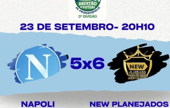 O New Planejados superou o Napoli por 6 a 5 na rodada do Abertão de Futsal de Prudentópolis 2025 disputada na noite de 23 de setembro, às 20h10. No outro jogo do dia, o Independente confirmou ampla superioridade e aplicou 8 a 0 sobre o Arsenal.