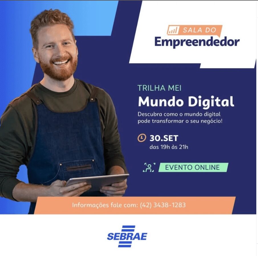 A Sala do Empreendedor de Prudentópolis realiza, em parceria com o Sebrae, a oficina Trilha do MEI – Mundo Digital nesta terça-feira (30), das 19h às 21h, em formato online e gratuito. Voltado a microempreendedores individuais, o encontro promete apresentar estratégias práticas para vender mais pela internet, com foco no uso de ferramentas digitais e rotinas simples para atrair e converter clientes.