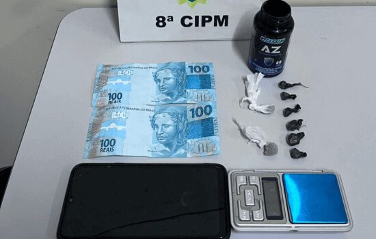 Na revista, o homem apresentou fala enrolada e comportamento alterado. Ao ser ordenado que abrisse a boca, engoliu um invólucro não identificado. A esposa, que o acompanhava, relatou que ele é usuário e havia ido ao endereço para adquirir droga. Em seguida, o abordado confirmou ter comprado uma pedra de crack e dito que a engoliu durante a ação policial.