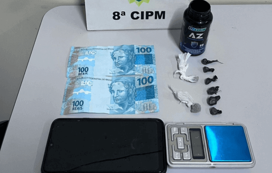 Com base no flagrante, a equipe retornou à residência alvo das denúncias. O morador foi visto pela janela tentando fugir pelos fundos, mas acabou abordado. Ele admitiu ter arremessado entorpecentes pela janela ao notar a aproximação da polícia. Nas buscas, os militares localizaram um pote preto com seis porções de crack (aprox. 4 g) e duas buchas de maconha (cerca de 1 g), além de uma balança de precisão e R$ 200 em duas notas de R$ 100.