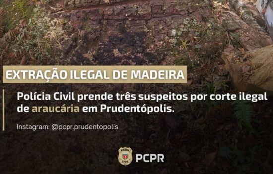 A Polícia Civil de Prudentópolis prendeu em flagrante, na tarde desta sexta-feira (28), três homens suspeitos de realizar o corte ilegal de uma araucária, árvore nativa da região e considerada espécie ameaçada de extinção. A ação foi registrada durante diligências realizadas por uma equipe de investigadores.