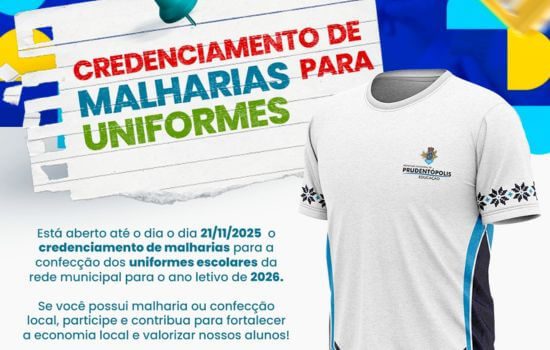 A Prefeitura de Prudentópolis abriu o credenciamento de malharias locais interessadas em confeccionar os uniformes escolares da rede municipal para o ano letivo de 2026. O objetivo é valorizar os empreendedores do município, fortalecer a economia local e garantir a produção de peças de qualidade para os alunos da rede pública.