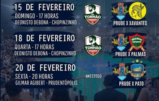 Pela Copa Tonhão Chopinzinho, o Prude entra em quadra no dia 15 de fevereiro, um domingo, às 17h, no Ginásio Deonisto Debona, em Chopinzinho, onde enfrenta a equipe do Xavantes. Na sequência, o time volta ao mesmo ginásio na quarta-feira, dia 18 de fevereiro, também às 17h, para o confronto contra o Palmas.