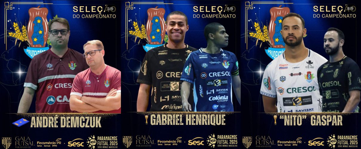 O Prude Futsal voltou a colocar Prudentópolis em evidência no cenário estadual ao brilhar no Gala Futsal Paraná 2025, uma das principais premiações do esporte no estado. O clube teve três representantes eleitos como os melhores da Série Bronze, reconhecimento que consolida o trabalho desenvolvido ao longo da temporada e reforça a força do projeto esportivo do município.