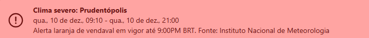 Prudentópolis está em alerta para a ocorrência de ventos fortes ao longo desta quarta-feira (10), em razão de um ciclone extratropical que atua sobre o Rio Grande do Sul e influencia o tempo em todo o Sul do Brasil. A cidade encontra-se em situação de risco considerado moderado para rajadas de vento, que podem variar entre 60 e 70 km/h, com possibilidade de momentos pontuais de intensidade maior, conforme os avisos dos órgãos meteorológicos.