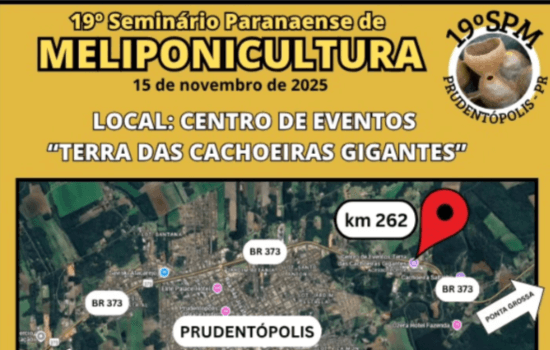 Prudentópolis recebe no dia 15 de novembro de 2025 o 19º Seminário Paranaense de Meliponicultura, evento tradicional do setor que reúne produtores, técnicos e estudiosos da criação de abelhas sem ferrão. O seminário acontecerá no Centro de Eventos “Terra das Cachoeiras Gigantes”, localizado na BR-373, km 262, no perímetro urbano de Prudentópolis, no Centro-Sul do Paraná.