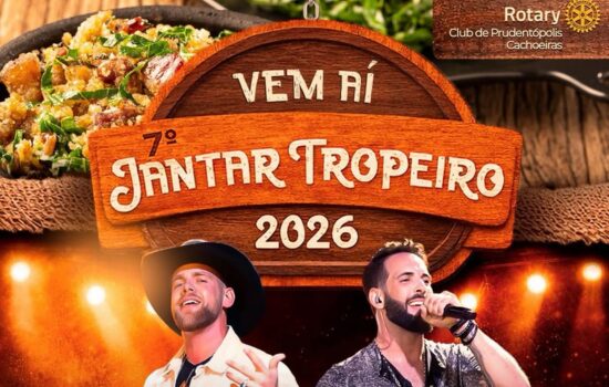 O Rotary Club de Prudentópolis Cachoeiras realiza no dia 17 de abril o 7º Jantar Tropeiro 2026, em um evento beneficente que promete reunir a comunidade em uma noite de confraternização, música e solidariedade. A programação será no Centro de Eventos Terra das Cachoeiras Gigantes, em Prudentópolis, e terá como atração principal o show da dupla Davi & Fernando. Além do entretenimento, o jantar também busca mobilizar o público em torno de uma boa causa, reforçando o caráter social da iniciativa promovida pelo clube.
