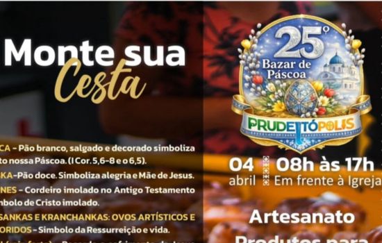 Paralelamente, o Bazar de Páscoa chega à sua 25ª edição, oferecendo artesanato, alimentos típicos e diversos produtos que integram a tradicional cesta pascal. O evento também valoriza o trabalho de produtores e artesãos locais, incentivando a economia e preservando costumes culturais que fazem parte da identidade de Prudentópolis.