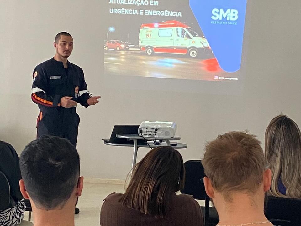 Colaboradores da Santa Casa de Misericórdia de Prudentópolis participaram, no dia 3 de outubro, do “Treinamento SAMU – Cuidar e Transferir: Preparo seguro do paciente para remoção e regulação SAMU”. A capacitação ocorreu no auditório da unidade e teve como foco aprimorar procedimentos que garantem segurança durante o transporte e na regulação dos pacientes, contribuindo para um atendimento mais qualificado e humano.
