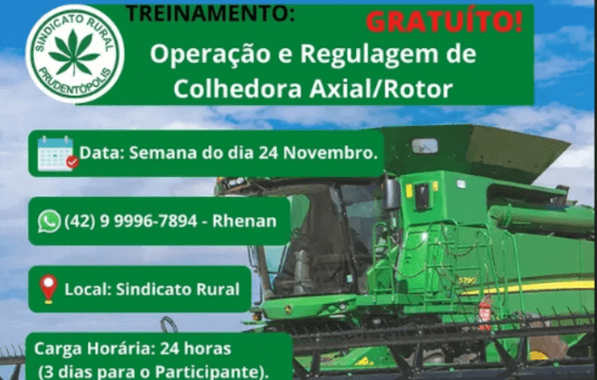 O Sindicato Rural de Prudentópolis anunciou uma série de treinamentos 100% gratuitos para produtores, trabalhadores e jovens do meio rural entre 11 de novembro e 16 de dezembro. A programação inclui cursos presenciais de operação de máquinas, manejo leiteiro, empilhadeira, cultivo de morango em substrato e preparo de alimentos sem glúten e sem lactose.