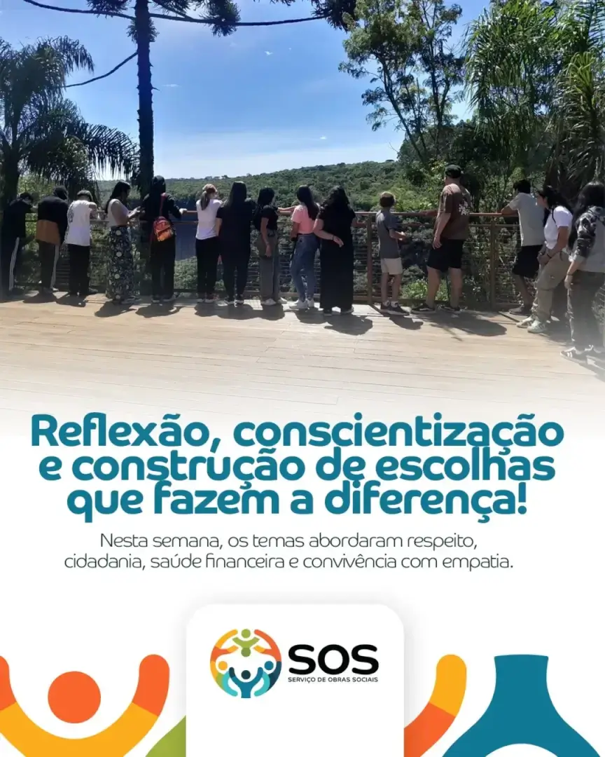 Durante os dias 20 a 24 de outubro, o Serviço de Obras Sociais (SOS) de Prudentópolis realizou a Semana de Aprendizagem e Convivência, um projeto voltado à formação cidadã e emocional de adolescentes. A iniciativa reuniu atividades que estimularam o respeito, o diálogo, a empatia e a responsabilidade individual e coletiva.