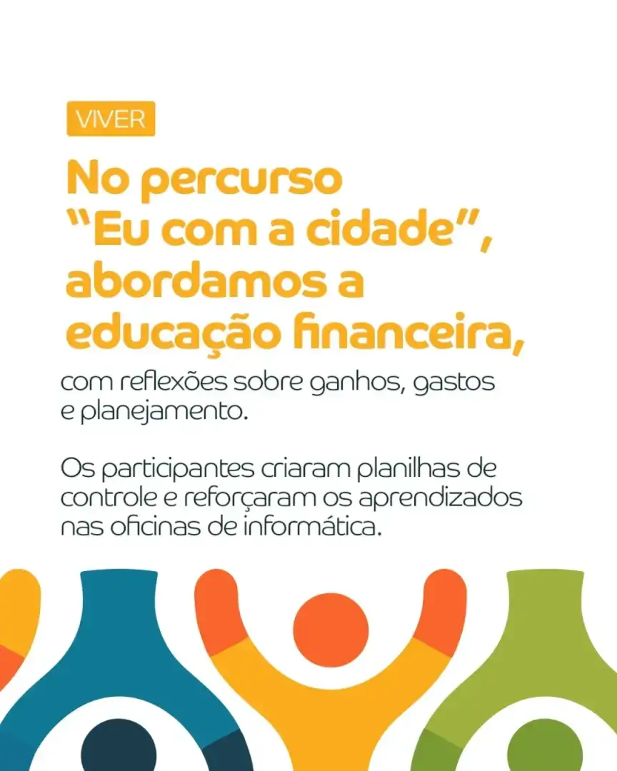 Os jovens também participaram de um passeio ao Monumento Natural Salto São João, vivenciando momentos de integração e contato com a natureza. Outra ação significativa foi o percurso “Eu com a cidade”, no qual os participantes aprenderam sobre educação financeira, criando planilhas de controle e discutindo planejamento e gastos conscientes.