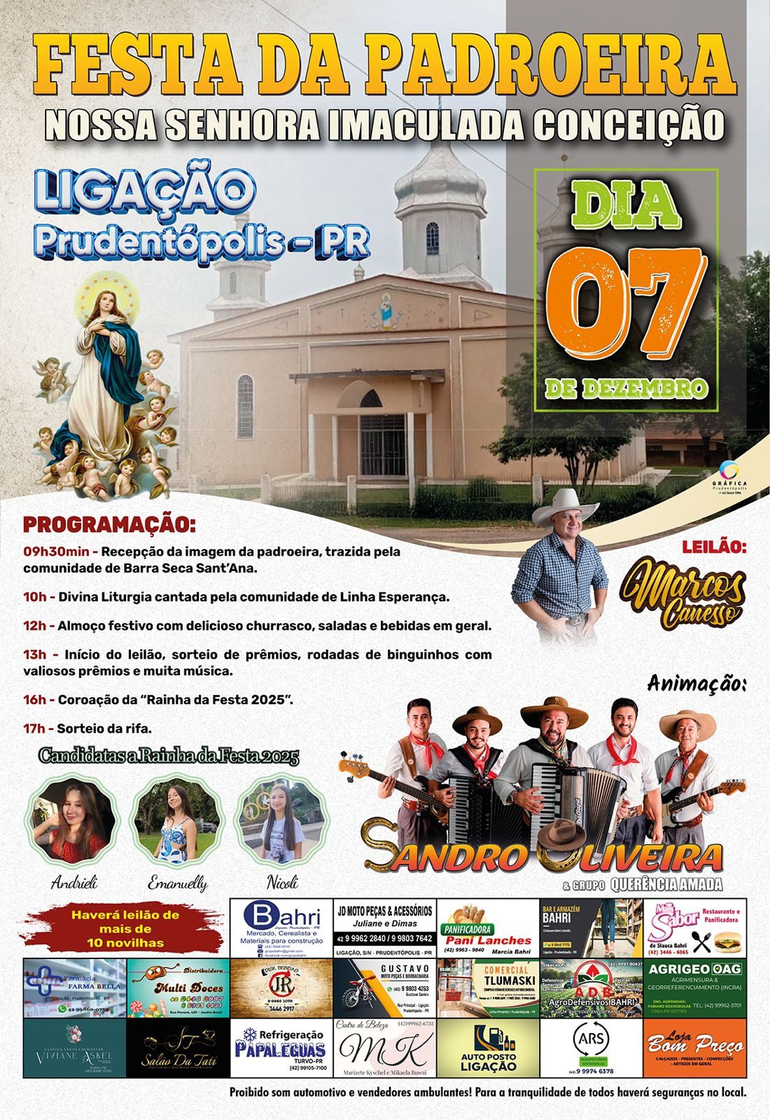 A animação da festa será com Sandro Oliveira & Grupo Querência Amada.
