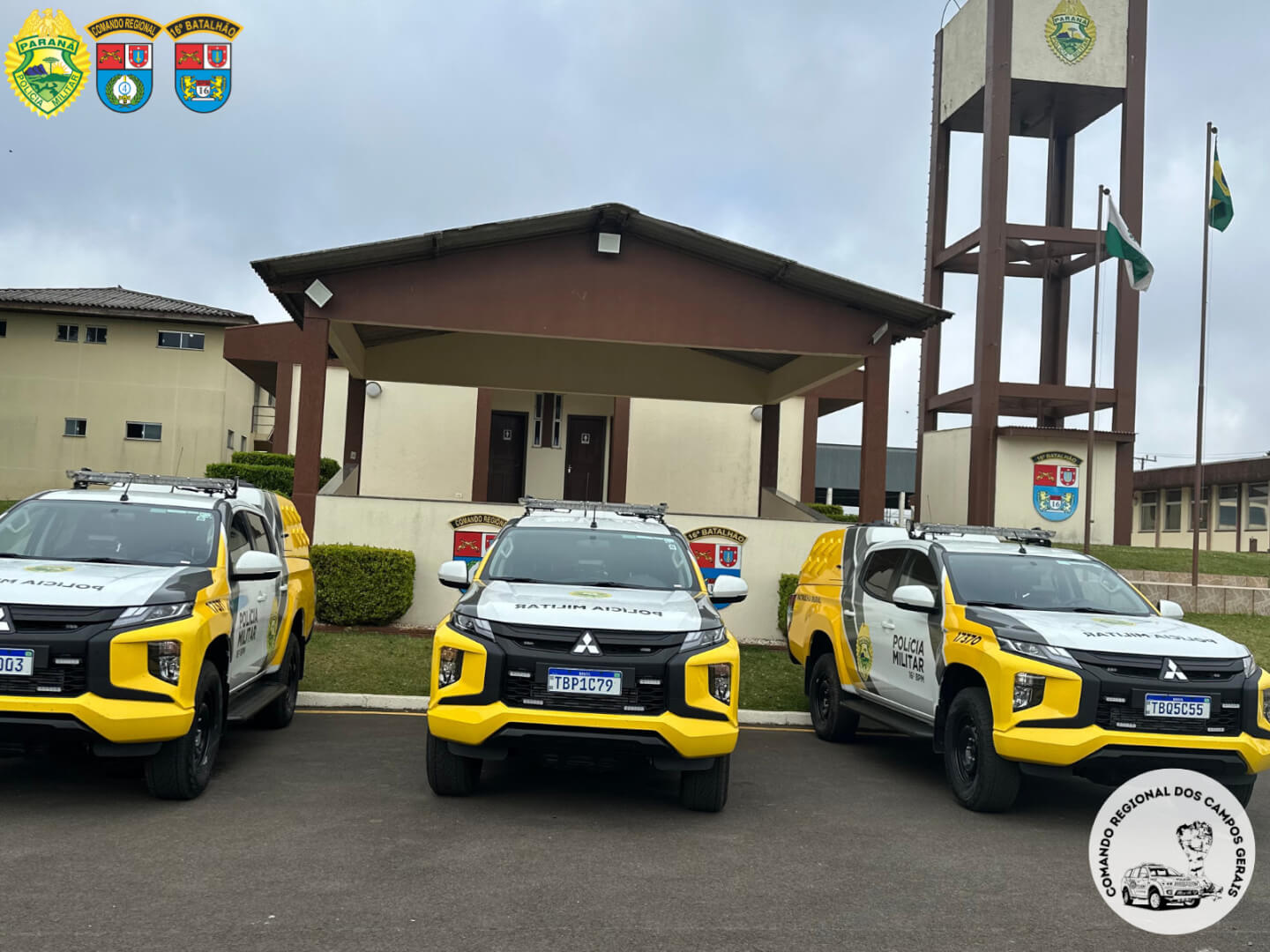 Entre os veículos entregues estão duas caminhonetes Mitsubishi/L200. Pelo menos uma delas será destinada à Patrulha Rural Comunitária, que atende Guarapuava, Pinhão, Pitanga, Turvo e também Prudentópolis, ampliando a capacidade de resposta da corporação em áreas mais afastadas.